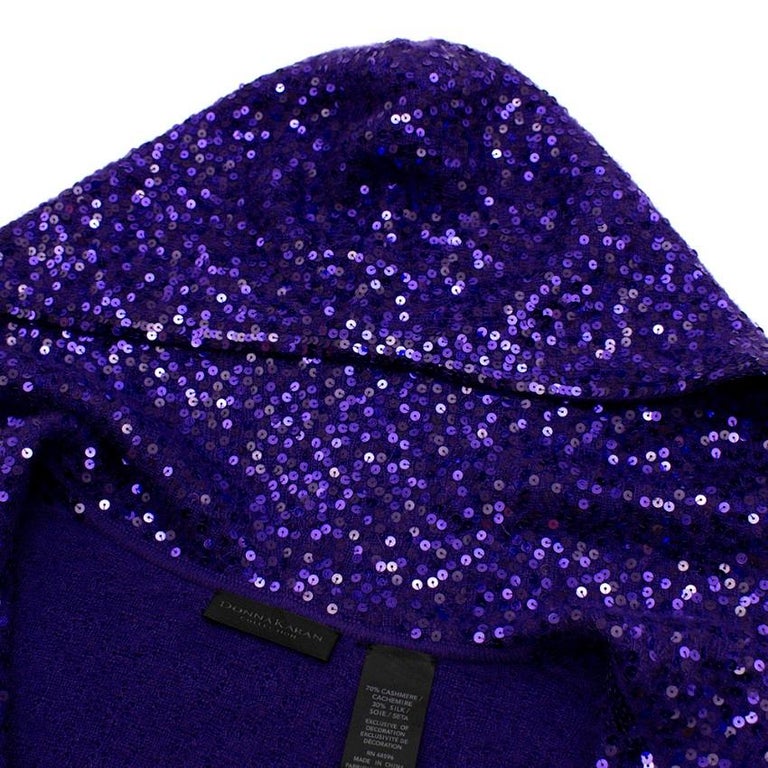 Donna Karan Purple Sequin Hooded Cashmere Cardigan Size Estimated XS