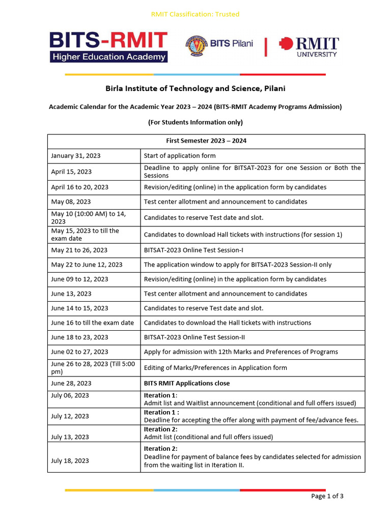 BITS RMIT AcademicCalendar PDF Academic Term University And