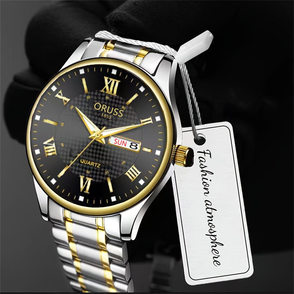Fashion Men Luxury Brand Mens Calendar Gold Watch Quartz Clock Big