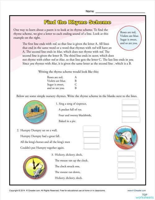 Rhyme Scheme Interactive worksheet TopWorksheets