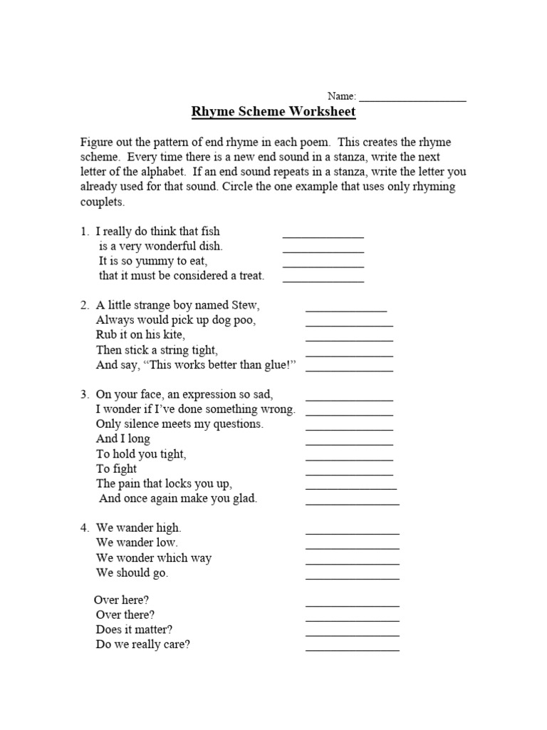 Rhyme Scheme Worksheet: Name PDF