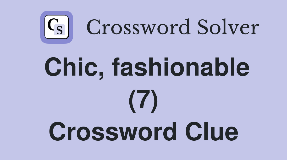 Chic fashionable (7) Crossword Clue Answers Crossword Solver