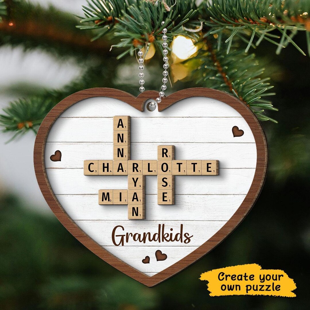 Custom Grandkids Crossword Puzzle Art Ornament Personalized Heart