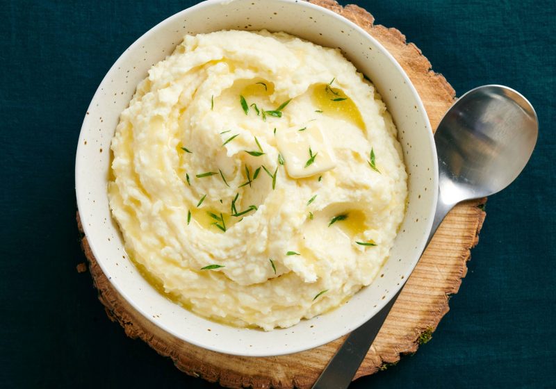 Rich and Silky Mashed Potatoes with Melted Butter garnished with Finely