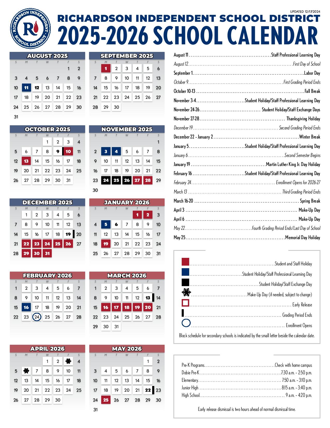 Here are some of the images for Richardson High School Calendar that we found in our website database.