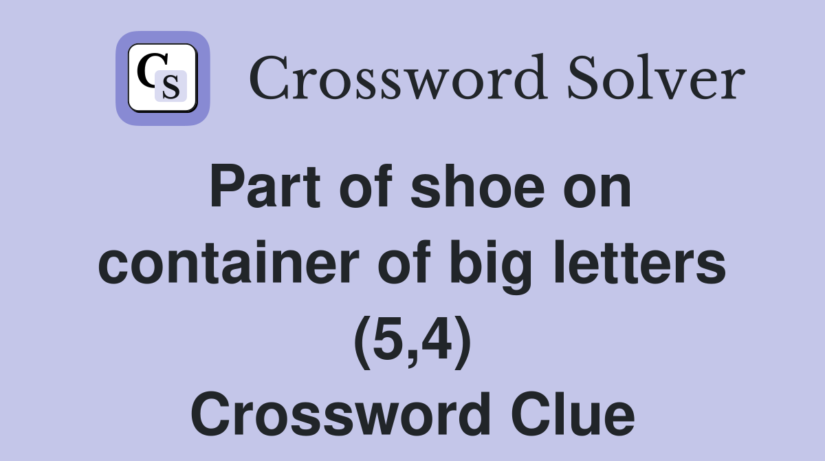 Part of shoe on container of big letters (5 4) Crossword Clue Answers