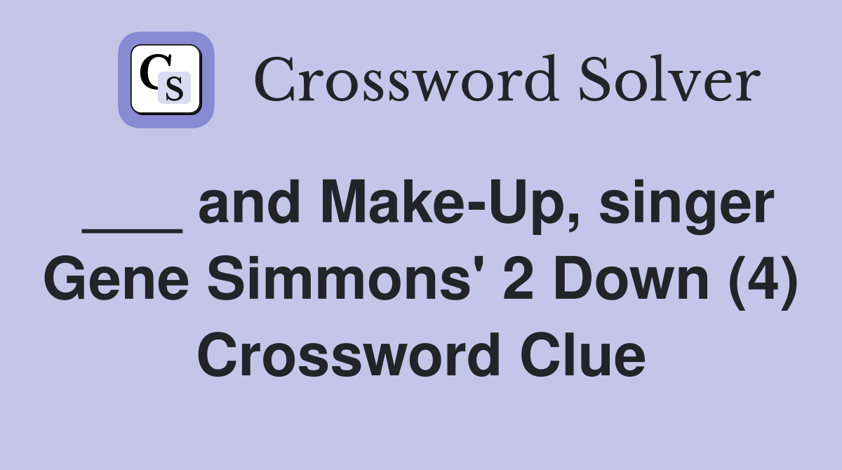 and Make Up singer Gene Simmons #39 2 Down (4) Crossword Clue Answers