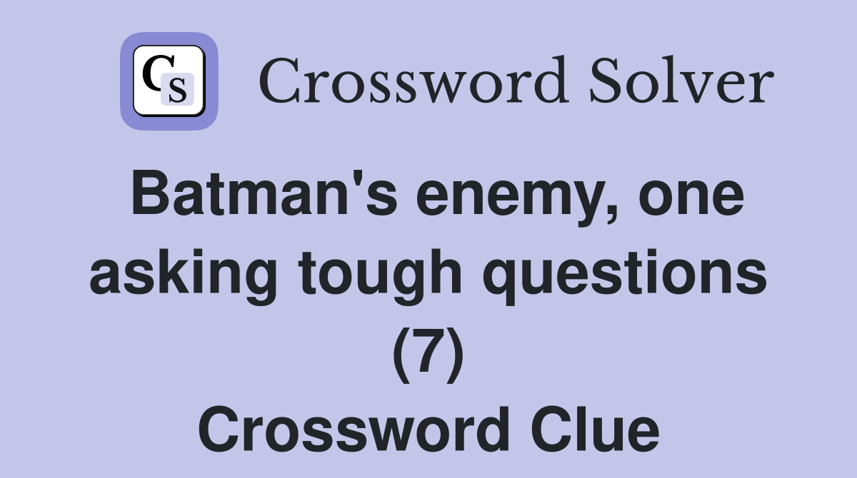 Batman #39 s enemy one asking tough questions (7) Crossword Clue Answers