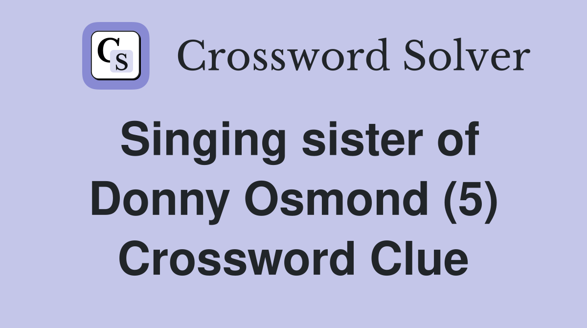 Singing sister of Donny Osmond (5) Crossword Clue Answers Crossword