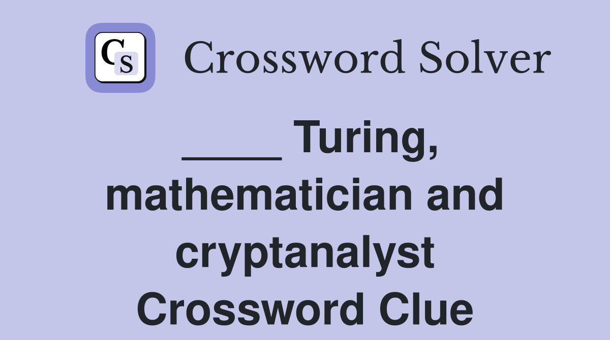 Turing mathematician and cryptanalyst Crossword Clue Answers