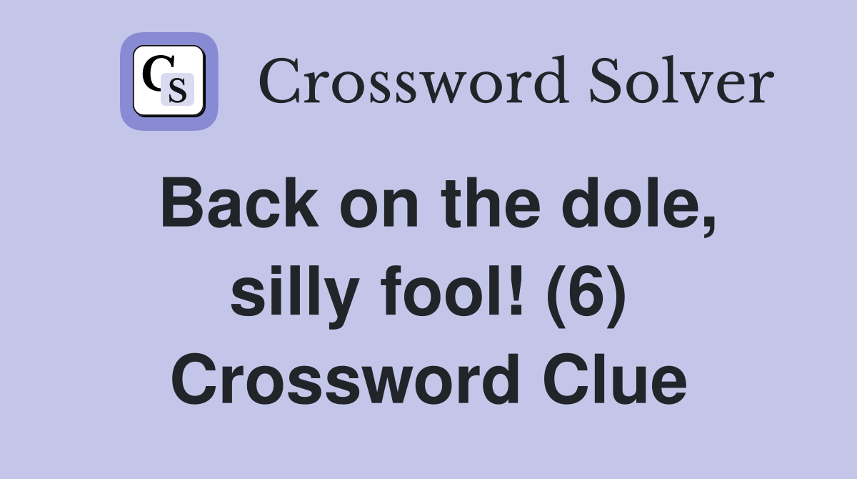 Back on the dole silly fool (6) Crossword Clue Answers Crossword
