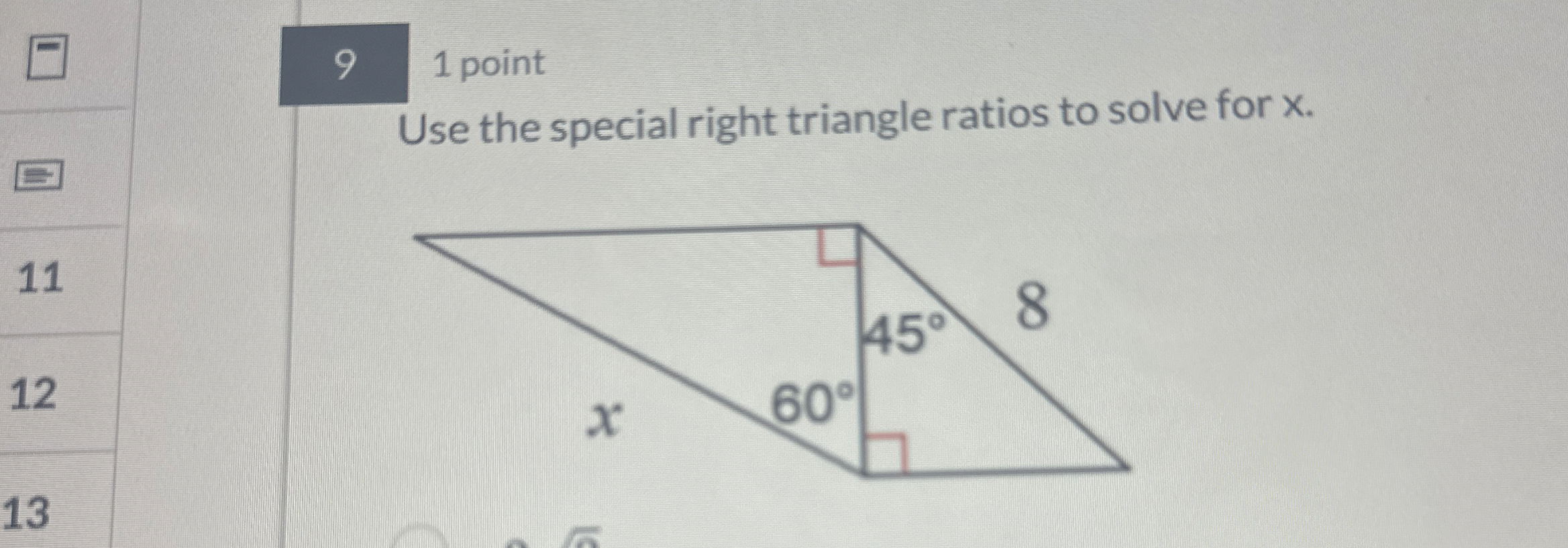 Solved Use the special right triangle ratios to solve for x Chegg com