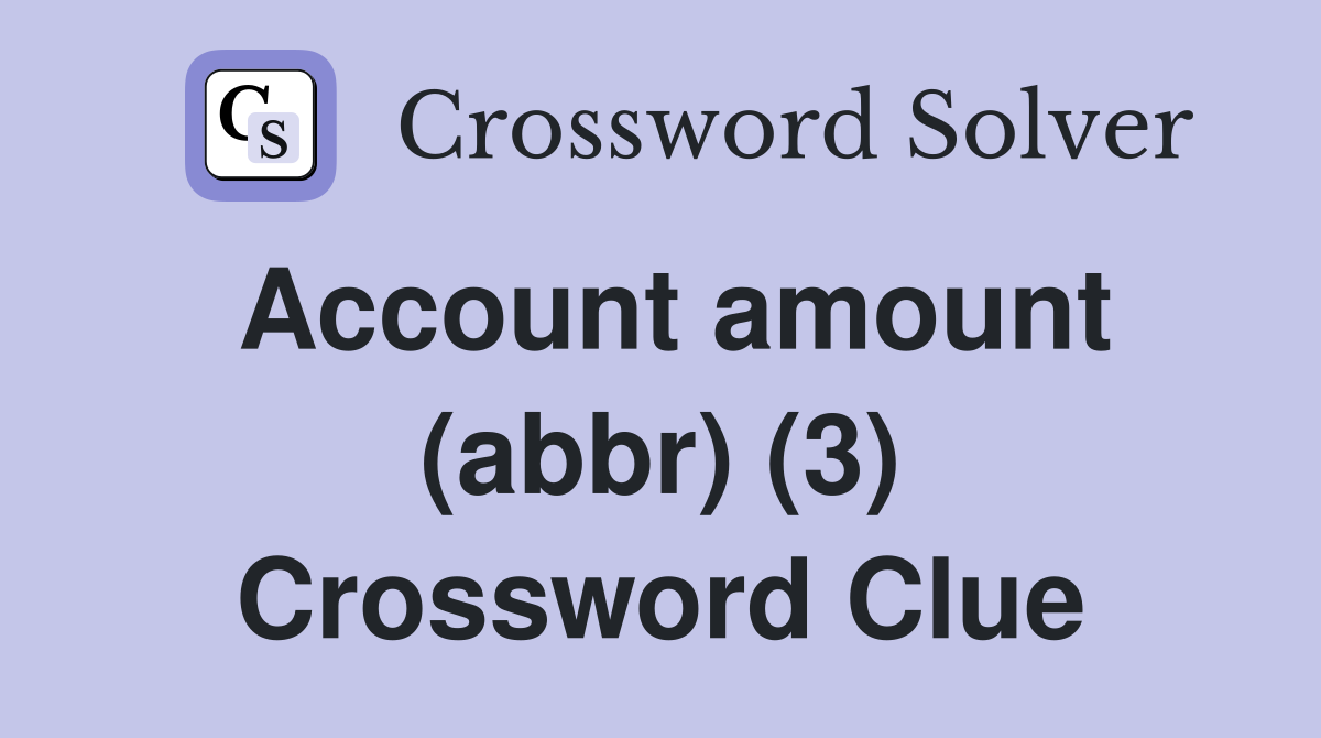 Account amount (abbr) (3) Crossword Clue Answers Crossword Solver