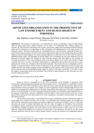 ADVOCATES ORGANIZATION IN THE PROSPECTIVE OF LAW ENFORCEMENT AND HUMAN