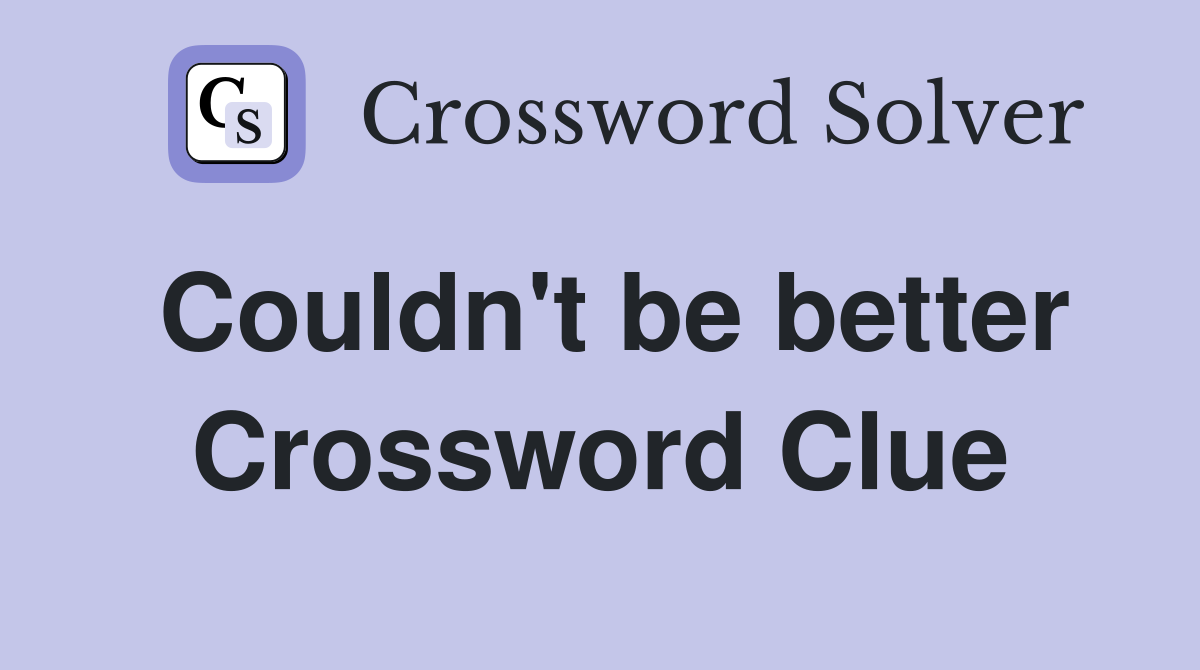 Couldn #39 t be better Crossword Clue Answers Crossword Solver
