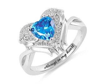 Narrow Heart Ring with Shoulder Accents All Birthstone™