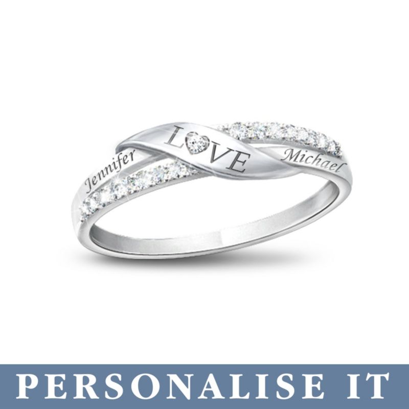 Love Personalised Rhodium Plated Diamond Ladies #39 Ring: #39 Love