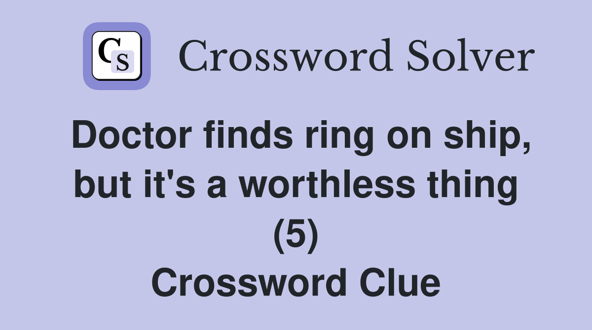Doctor finds ring on ship but it #39 s a worthless thing (5) Crossword