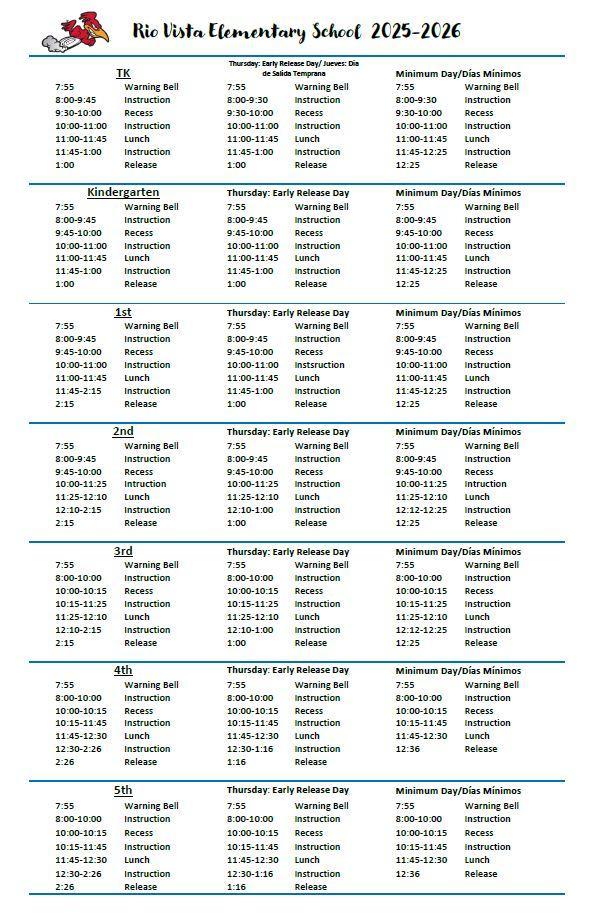Here are some of the images for Rio Vista Elementary School Calendar that we found in our website database.
