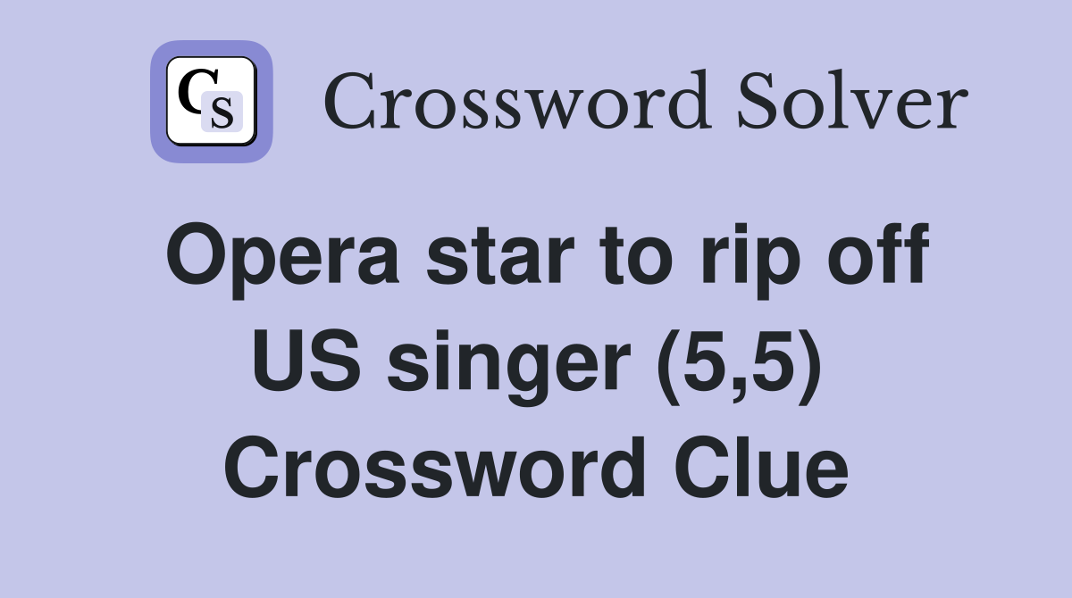 Opera star to rip off US singer (5 5) Crossword Clue Answers