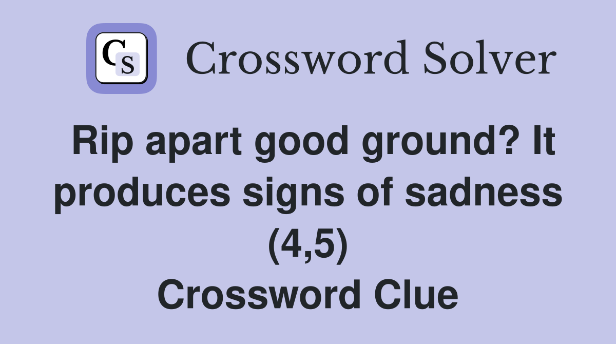 Rip apart good ground? It produces signs of sadness (4 5) Crossword