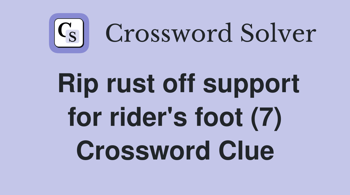 Rip rust off support for rider s foot (7) Crossword Clue Answers