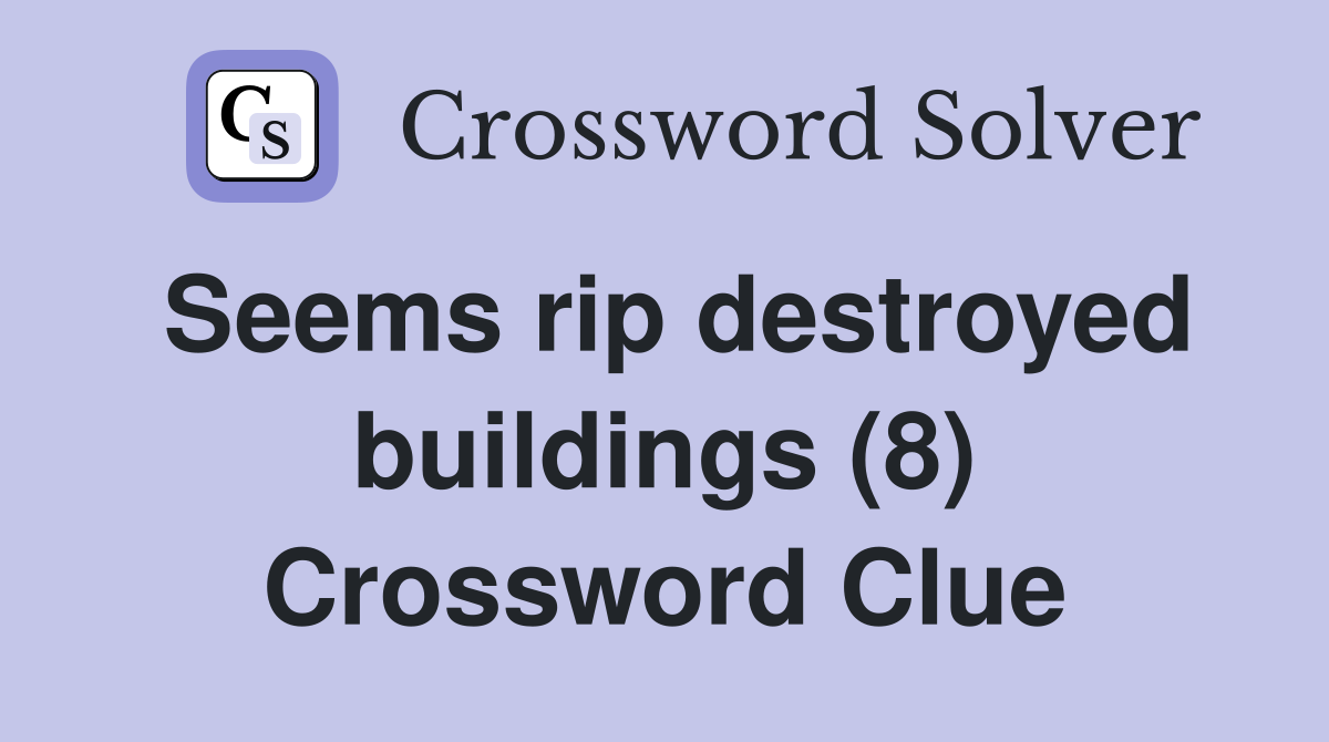 Seems rip destroyed buildings (8) Crossword Clue Answers Crossword