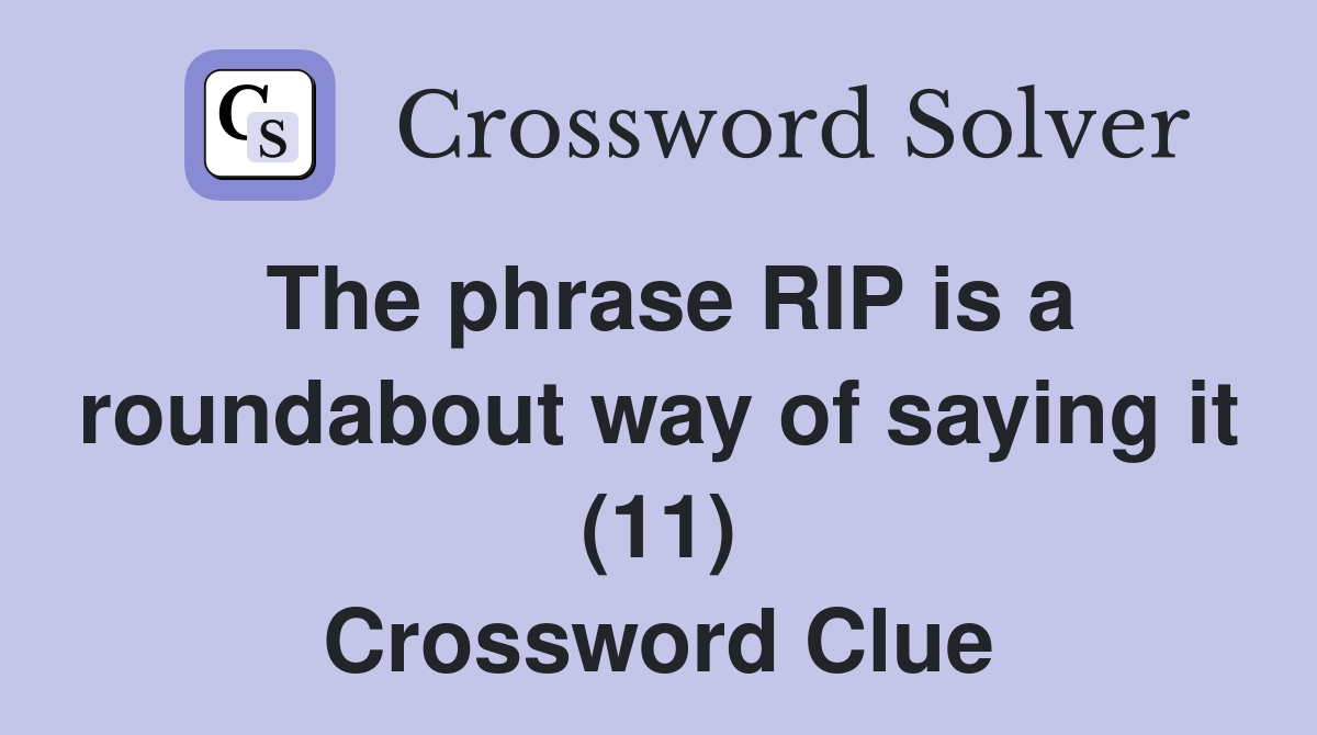 The phrase RIP is a roundabout way of saying it (11) Crossword Clue