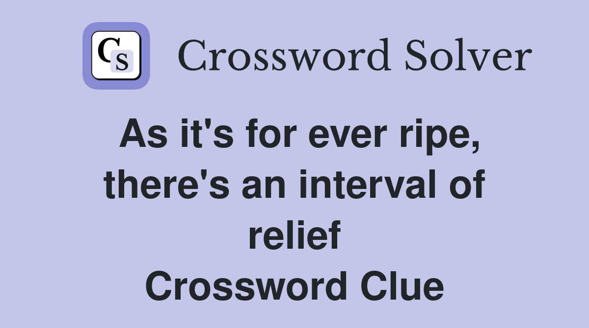 As it #39 s for ever ripe there #39 s an interval of relief Crossword Clue