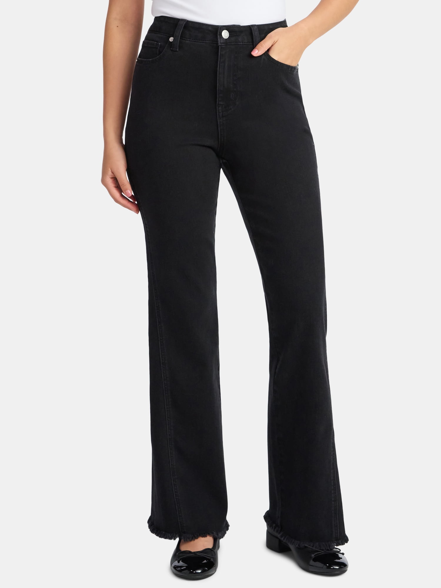 Time and Tru Women #39 s High Rise Flare Jeans With Side Seam Details 32