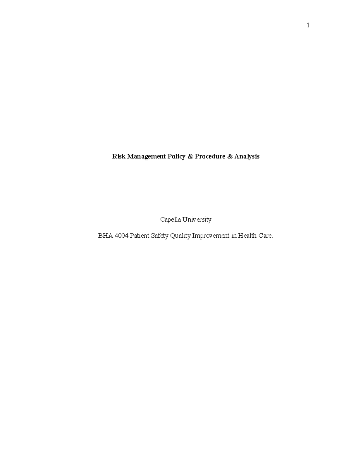 Risk Management Policy Procedure Analysis: Enhancing Patient 1 Risk