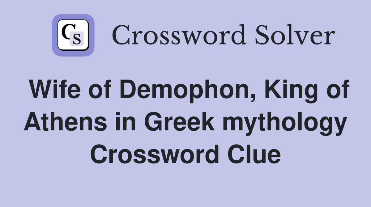 Wife of Demophon King of Athens in Greek mythology Crossword Clue