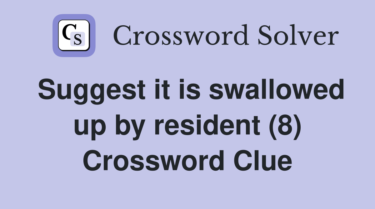 Suggest it is swallowed up by resident (8) Crossword Clue Answers