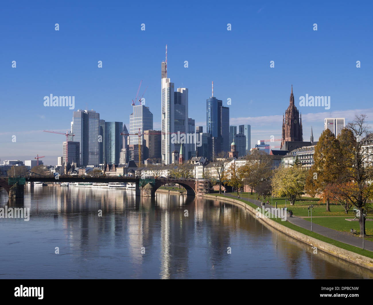 Germany Hesse Skyline of Frankfurt with River Main Stock Photo Alamy