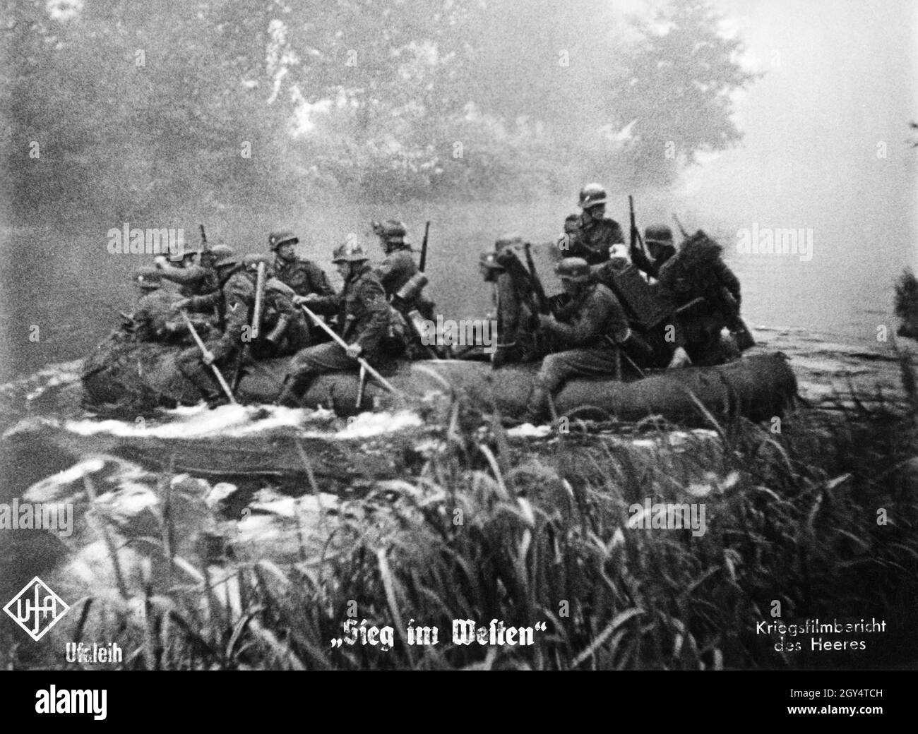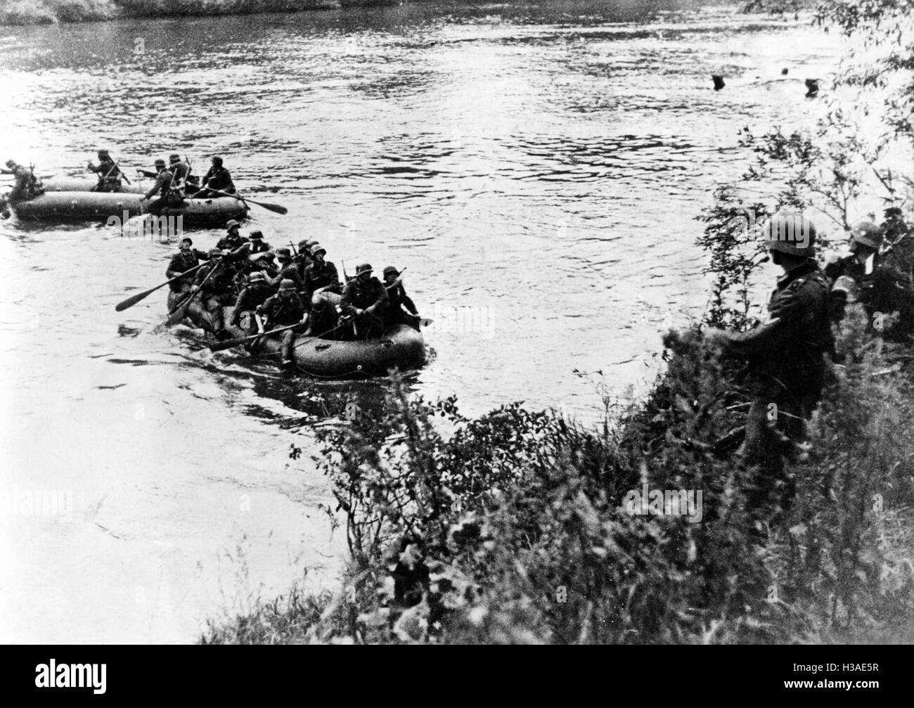 German infantrymen cross a river on the Eastern Front 1941 Stock Photo