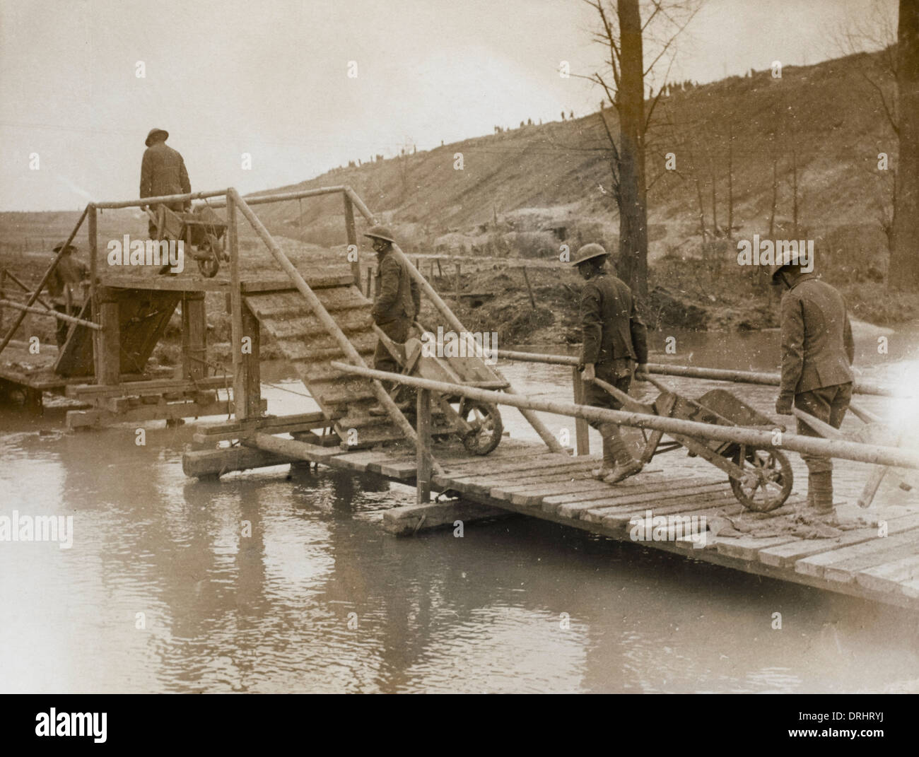 Brtish troops crossing a river Western Front WW1 Stock Photo Alamy