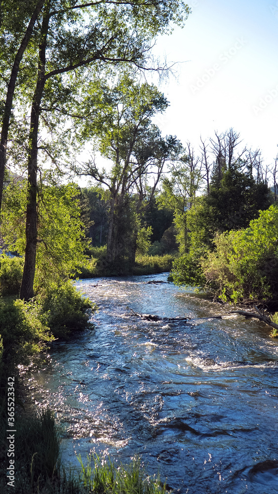 Dawn light in summer on the Cimarron River in Cimarron Canyon State