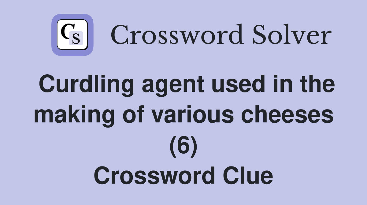 Curdling agent used in the making of various cheeses (6) Crossword