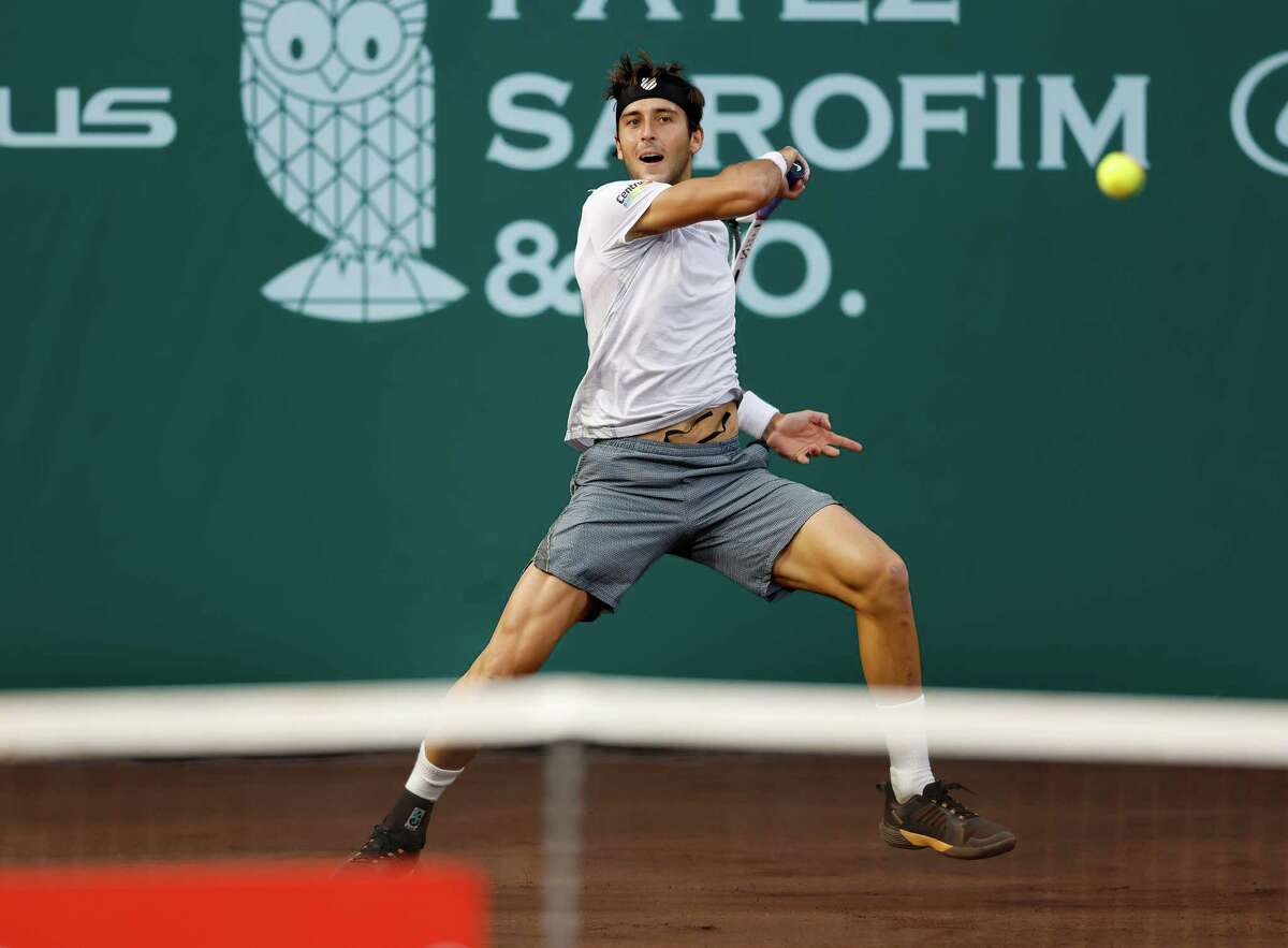 HOUSTON TX APRIL 04: Chrsitan Garin (CHI) returns a shot during