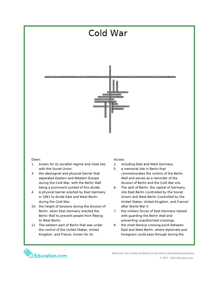 Cold War Crossword PDF Berlin Wall East Germany