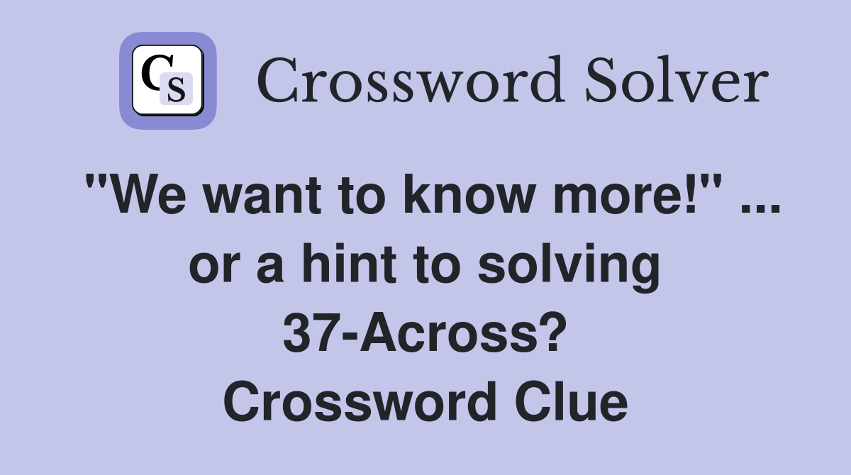 quot We want to know more quot or a hint to solving 37 Across? Crossword