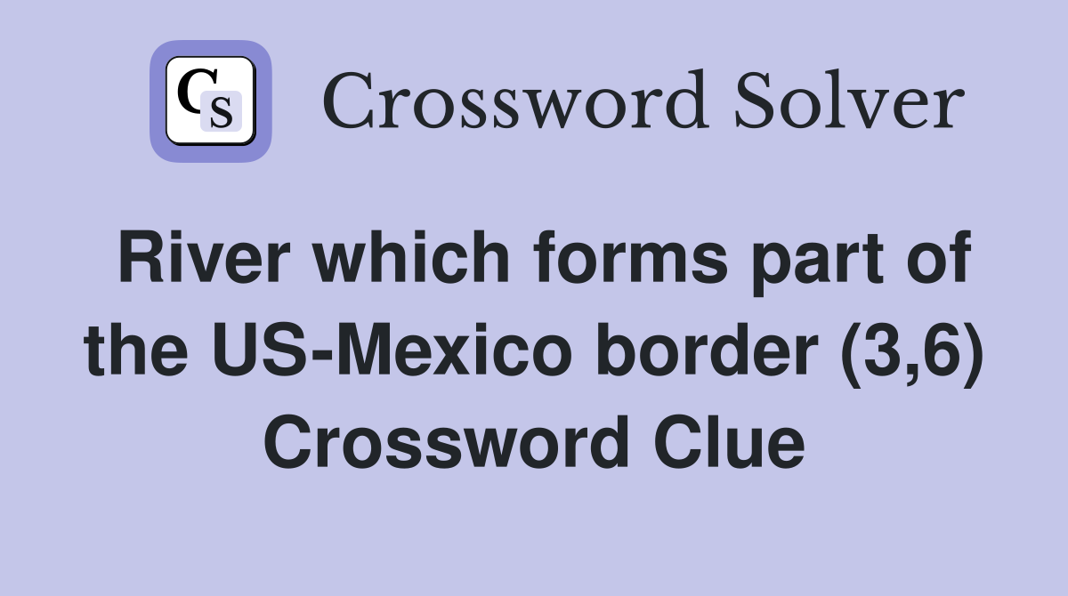 River which forms part of the US Mexico border (3 6) Crossword Clue