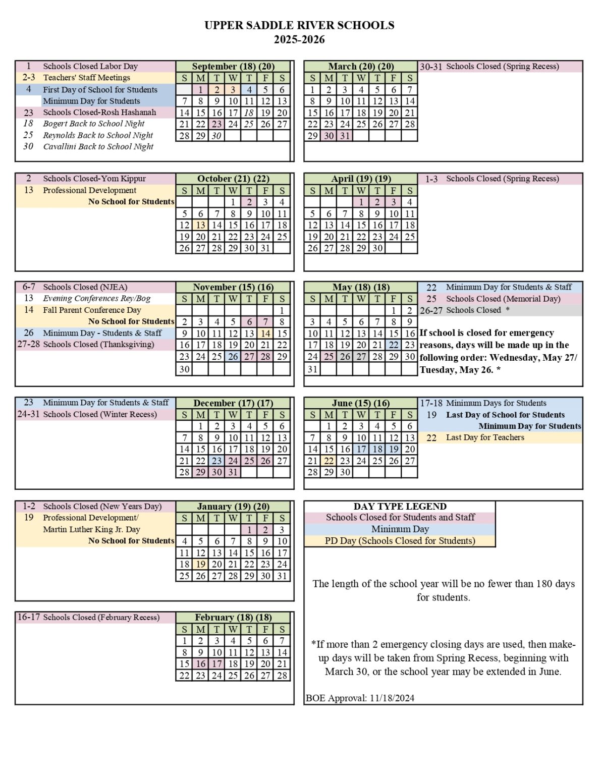 Upper Saddle River School District Calendar 25 26 Revised EduCounty