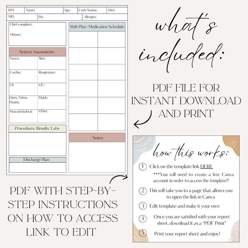 Editable RN Report Sheet Template Nurse Brain Sheet Instant Download