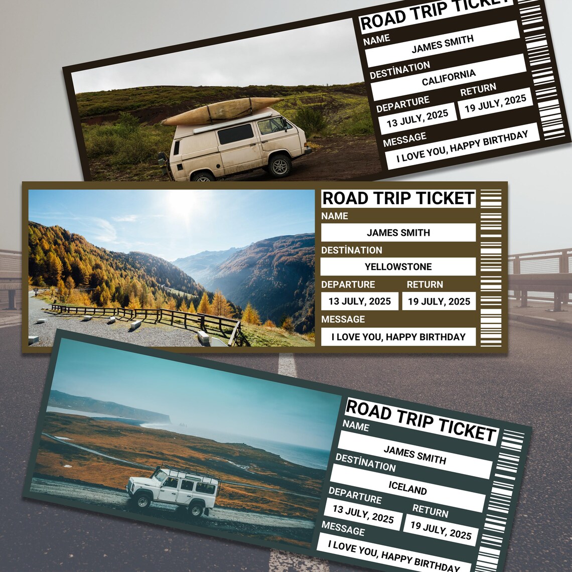 Editable Road Trip Ticket Template Printable Road Trip Surprise Gift