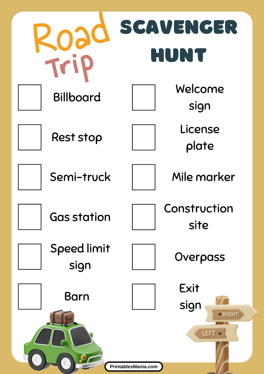Adventure on Wheels: Free Printable Road Trip Scavenger Hunt for All