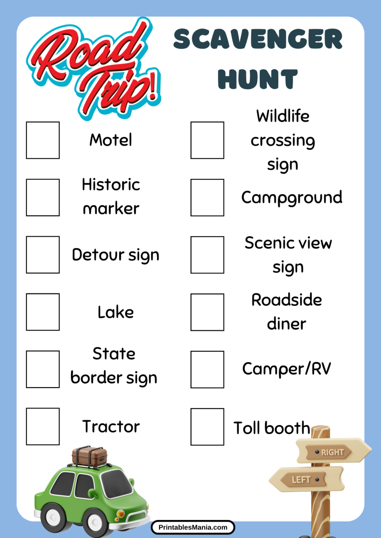 Road Trip Scavenger Hunt Printable Plan Your Year Easily