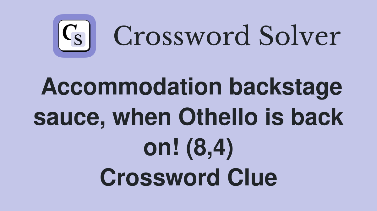 Accommodation backstage sauce when Othello is back on (8 4