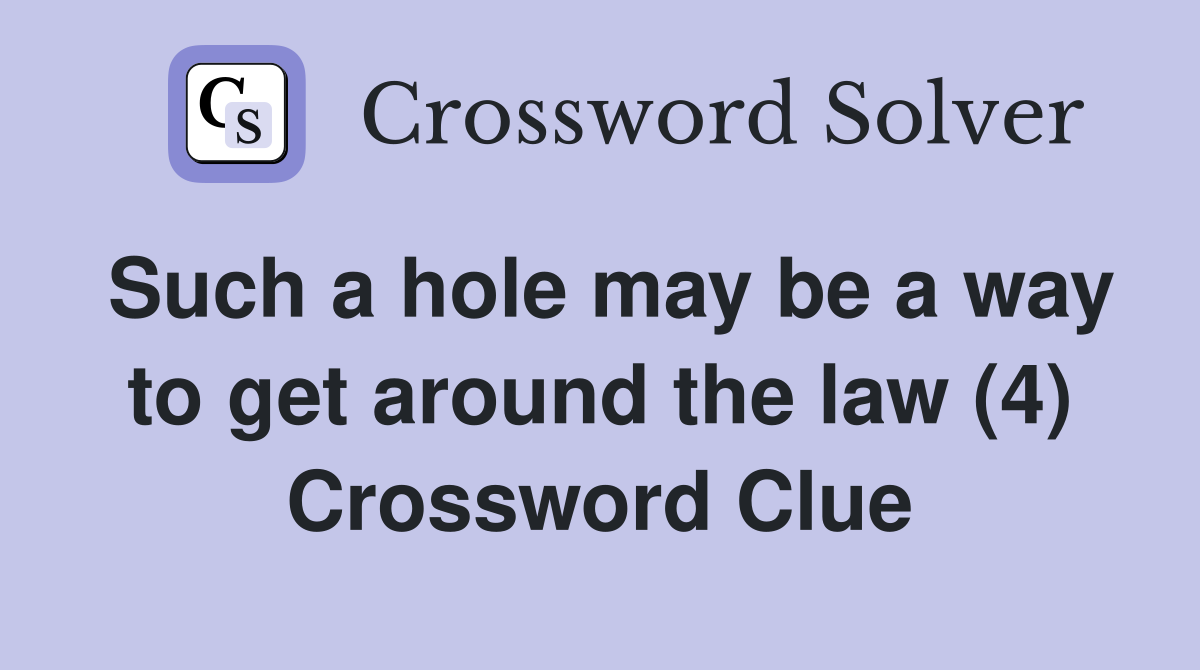 Such a hole may be a way to get around the law (4) Crossword Clue