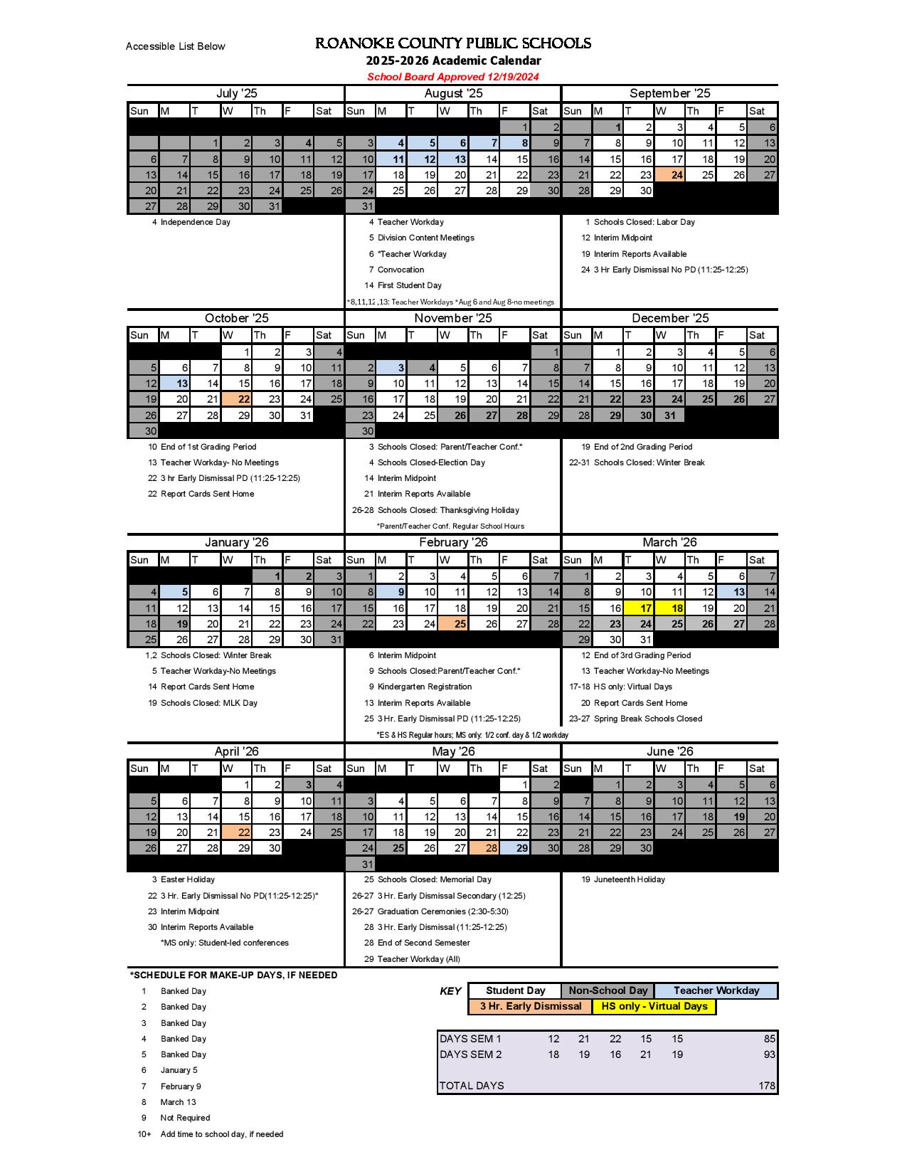 Roanoke County Public Schools Calendar 25 26 Revised PDF EduCounty